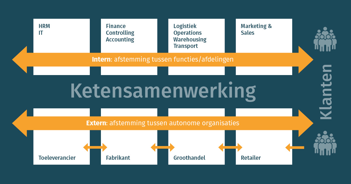 Ketensamenwerking[2] (ook wel supply chain collaboration, supply chain management, partnering genoemd) gaat over het systematisch, strategisch coördineren van traditionele functies (bv inkoop, productie, verkoop) binnen bedrijven en tussen bedrijven, met als doel om de lange termijn prestatie van zowel de individuele betrokken organisaties alsook voor de keten als geheel langdurig te verbeteren (win-win). Er bestaat dan ook een interne (niveau 1 en 2) en externe variant (niveau 3) van ketensamenwerking [3].